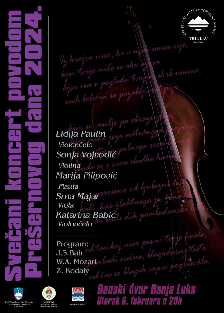 V torek, 6. februarja, s pričetkom ob 20. uri, je v banjaluškem hramu kulture Banski dvor pred slovenskim kulturnim praznikom v organizaciji Društva Slovencev Triglav potekal koncert komorne glasbe. Kot vsako leto so se Triglavčani potrudili Banjalučane počastiti s...
