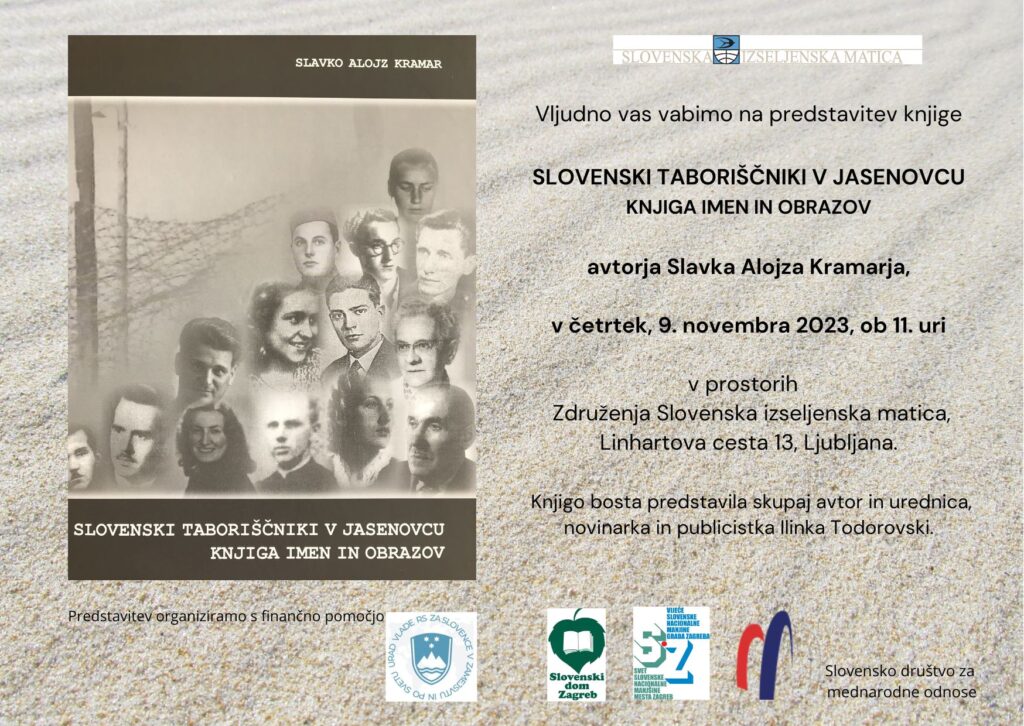 V prostorih Združenja Slovenska izseljenska matica je 9. novembra potekala zelo odmevna predstavitev knjige Slavka Alojza Kramarja Slovenski taboriščniki v Jasenovcu – Knjiga imen in obrazov. Dogodek so skupaj z Matico soorganizirali Slovensko društvo za mednarodne...