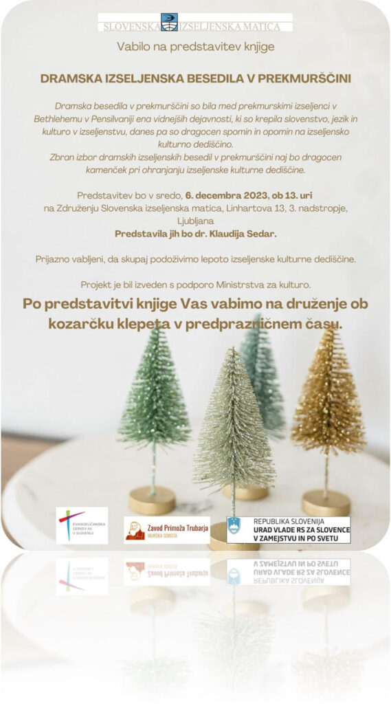 Združenje Slovenska izseljenska matica v praznični december stopa s predstavitvijo knjige Dramska izseljenska besedila v prekmurščini. Preživite prijetno literarno popoldne na sedežu SIM, Linhartova 13, Ljubljana, v sredo, 6. decembra, z začetkom ob 13.00, ko bo o...